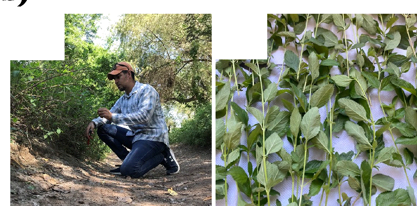 Figura 1. Obtención de la planta L. alba. a) Recolección de fragmentos de tallo, b) Proceso de secado.